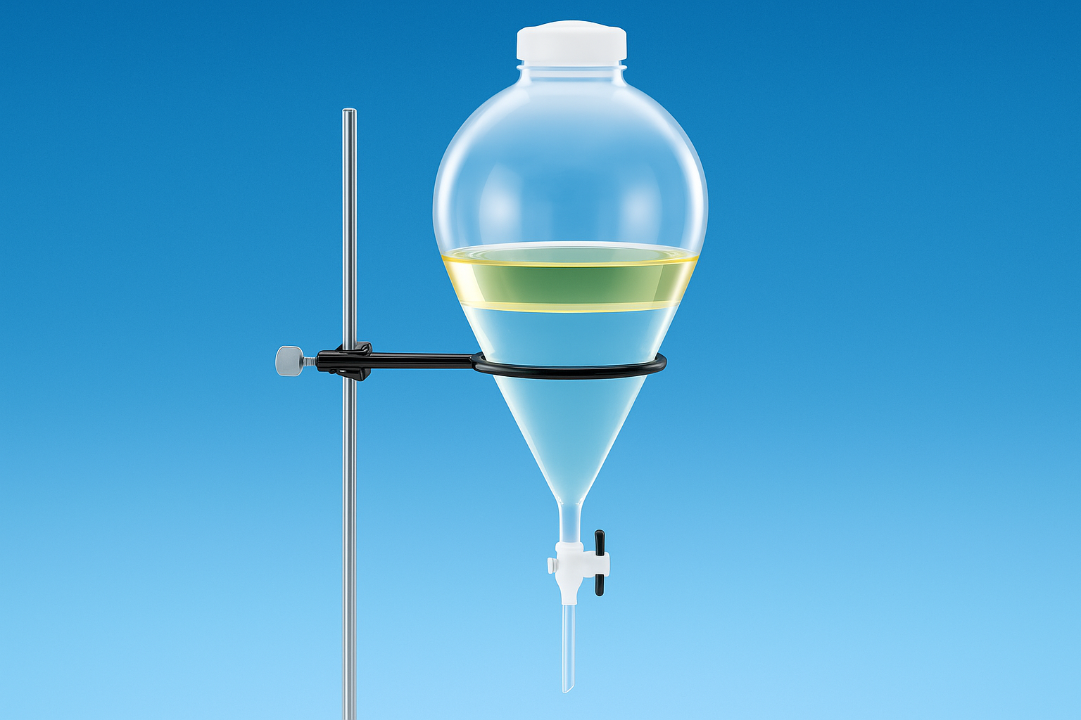 - Выделение веществ из гетерогенной смеси, мало растворимых друг в друге жидкостей с различной плотностью. Смеси бензина и воды, нефти и воды, растительного масла и воды быстро расслаиваются. Можно использовать делительную воронку или колонку (для больших объемов). Иногда используют центрифугирование для разделения жидкостей с различной плотностью.